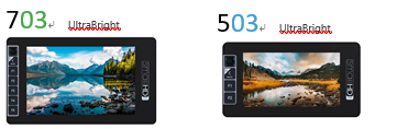 smallHD 703 / 503: 7吋及5吋超高亮度2500尼特的 Full HD 監(jiān)視螢?zāi)恢г瓾DMI / SDI 輸入以及輸出,且符合HDR規(guī)范標(biāo)準(zhǔn)提供70%的NTSC色域支援。