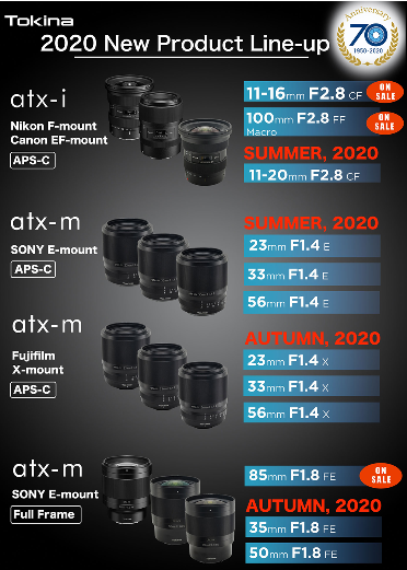 由于新冠肺炎的緣故,原訂今年2月舉辦的日本CP+ (相機(jī)暨影像大展)被迫取消,Tokina圖麗也因此改為線(xiàn)上發(fā)布2020年的新鏡頭開(kāi)發(fā)計(jì)劃。在鏡頭未來(lái)藍(lán)圖的規(guī)劃中,除將經(jīng)典的atx-I 11-20mm F2.8CF推出升級(jí)版外,也針對(duì)Sony與Fujifilm等不同相機(jī)制造商的全畫(huà)幅、APS-C規(guī)格推出一系列大光圈定焦鏡頭,豐富的產(chǎn)品線(xiàn)讓喜愛(ài)Tokina圖麗的用戶(hù)有更多選擇,讓我們拭目以待!