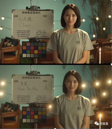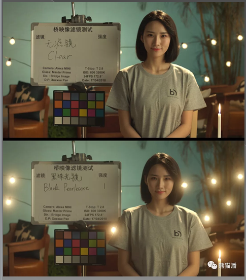 特點:保留對比度,通過測試,可以看見黑珠光鏡和珠光鏡的散光機(jī)制好像發(fā)生了變化,似乎珠光鏡更“實”一點,黑色的散光變得有點虛,如果不介意后期把對比度拉回來的話其實個人覺得珠光鏡比黑珠光鏡美一點。尤其是人物皮膚上面的質(zhì)感