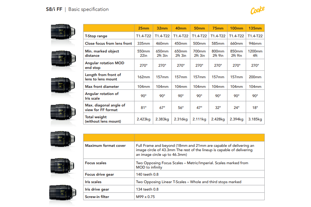 目前Cooke S8/i FF全系列共有16支,先發(fā)表7支,焦段為25/32/40/50/75/100/135mm,會(huì)在4月開始供貨,剩下的焦段18/21/27/35/65/85 MARCO/180/250/350mm會(huì)陸續(xù)在2022年底前供貨,更多Cooke敬請(qǐng)關(guān)注正成官網(wǎng)。